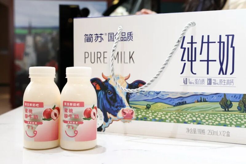 “简苏”牛奶以国企品质为基石,以天然营养为核心,凭借“国企自有牧场+极致纯净配方”构建差异化竞争优势。其中,“简苏”4.0纯牛奶成为江苏yp电子首批获“苏垦优品”品牌授权准入的产品。线下开设“鲜奶吧”门店,销售现酿酸奶、冰激凌等产品,为消费者带来全新体验。积极参加东海水晶市场农产品集市、工业博览中心展会、海州农贸市场农业大集等商贸活动,让消费者零距离接触品牌。同时,还与中山精品酒店嘉年华超市等渠道建立良好合作关系,实现较高复购率,并与康济大药房、顺丰等开展联合营销,拓展线下体验场景。线上利用新媒体平台优势,开设抖音、京东等店铺直播带货,与《快乐向前冲》等热门IP跨界联动,打造多个销售成功案例。此外,还开设微信视频号进行直播,不断拓展线上销售渠道。