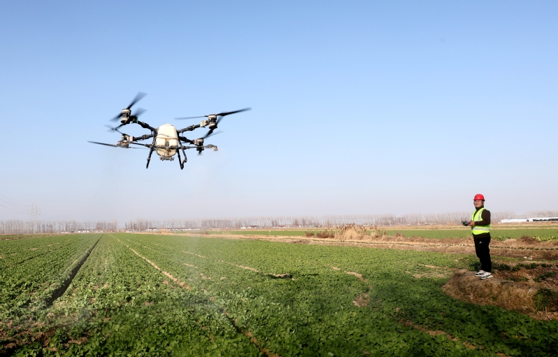 苏垦农发新曹分公司立足小麦、油菜生长特性,以“保苗越冬、提质增效”为核心目标,通过“苗情监测精准化+技术指导常态化+作业服务智能化”,扎实推进冬季田间管护各项工作,全力守护全年农业生产成果。图为植保无人机进行农药喷洒作业。