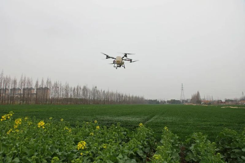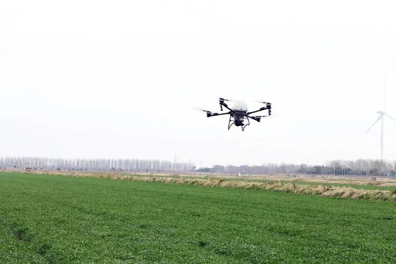 无人机“飞”出夏粮丰收底气。在苏垦农发弶港分公司金滩涂基地,5000余亩小麦整齐健壮、长势喜人。基地坚持精细化田间管理,落实科学化农艺措施,为夏粮丰产丰收打下坚实基础。据农业中心技术人员介绍,3月初的连续降雨有效补充了土壤墒情,对小麦生长十分有利。 基地管理人员抢抓农时,全力推进追肥、病虫害防控等关键田管工作。多架无人机在麦田上空有序穿梭,将肥料与药剂均匀喷施到田间,高标准完成拔节肥追施及病虫害防控任务。据悉,无人机日作业面积可达1000亩,肥料农药利用率提升20%以上,既确保喷施均匀,又减少资源浪费,有力推动农机与农艺深度融合,为小麦优质生长保驾护航。