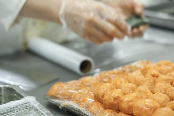 “每天凌晨两点多钟,我就到后厨开始和馅调料做准备工作了,四点多餐饮后厨就正式开工,这样才能保证每天六点半外卖窗口准时供应青团系列产品。”中山大厦面点师傅说道。